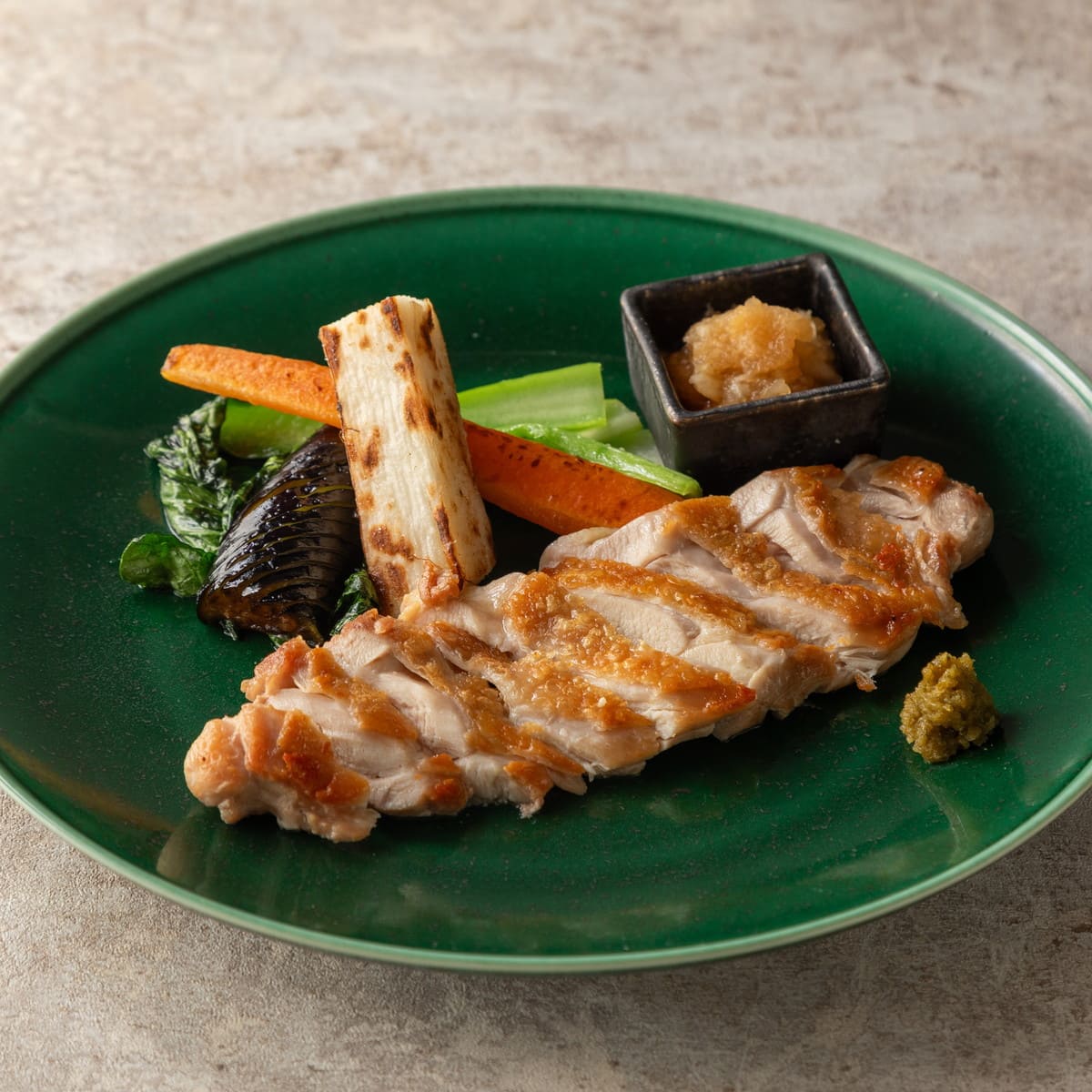 大山どりもも肉の塩焼きと焼き野菜